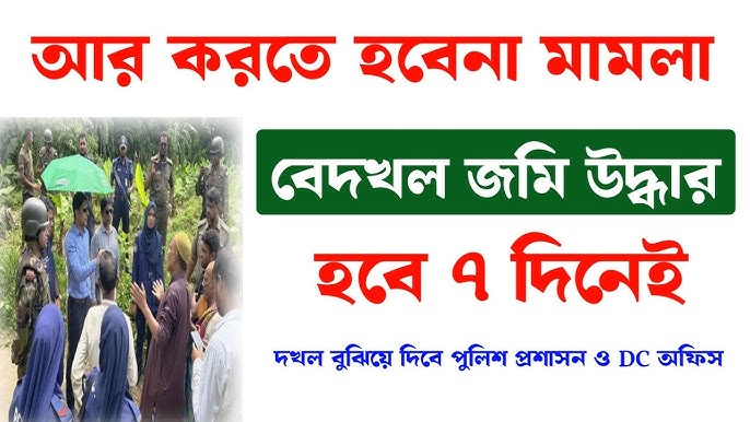 দেশে দীর্ঘদিন ধরে জমি বেদখল ও দখলবাজির অভিযোগে ভোগান্তিতে থাকা প্রকৃত মালিকদের জন্য সুখবর এসেছে। সম্প্রতি সরকার নতুন ভূমি আইন পাস করেছে, যার আওতায় এখন মাত্র ৭ দিনের মধ্যেই ডিসি (জেলা প্রশাসক) ও পুলিশ প্রশাসনের মাধ্যমে বেদখল জমি উদ্ধার করা যাবে।